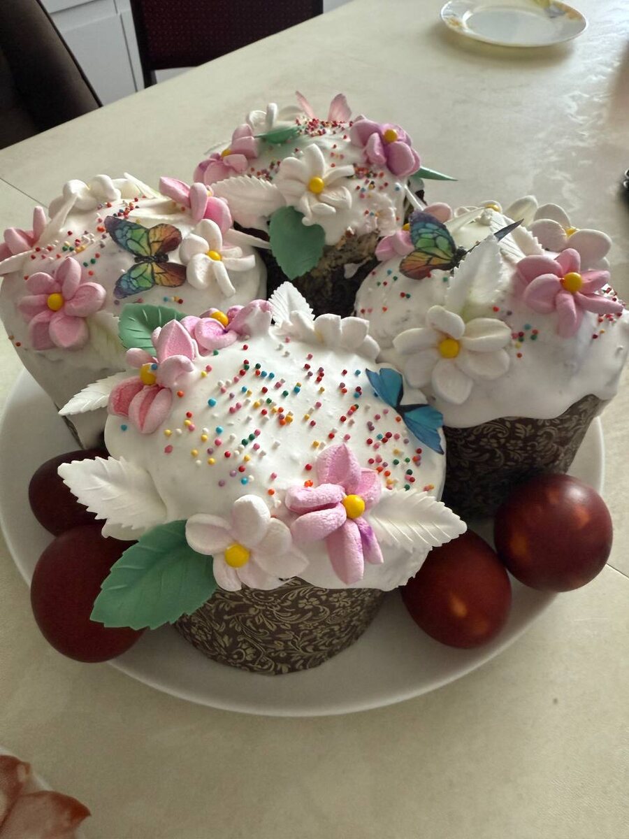 500 гр муки 7-8 гр сухих дрожжей 25 мл молока это НЕ ошибка, столько и нужно!!!!!! 6 яиц 100 гр сахара Щепотка соли 300 гр масла сливочного 160 гр изюма (на час замочить в соке 1/2 апельсина) + цукаты или курага 1/2 цедра лимона или апельсина Вообщем берём яица, сахар, мука, дрожжи, молоко и промешиваем в тестомесе , потом добавляем 300 гр масла и опять перемешиваем, после изюм и цукаты и опять перемешать. И оставляем в тёплое место, на несколько часов , либо можно в слегка подогретую духовку пока тесто не поднимется, после обменяем и тесто на 12 часов в холодильник Утром тесто разделяем по формам и даём ещё раз подняться, примерно 1,5 часа Теперь выпекаем при температуре 160 градусов 30-35 мин, готовность проверяем шпажкой Для глазури берём 2 ч л желатина, разбавляем 2 ч л холодной воды, перемешиваем далее к желатину добавляем 60 мл кипятка перемешиваем и вливаем к сахарной пудре (160 г) взбиваем