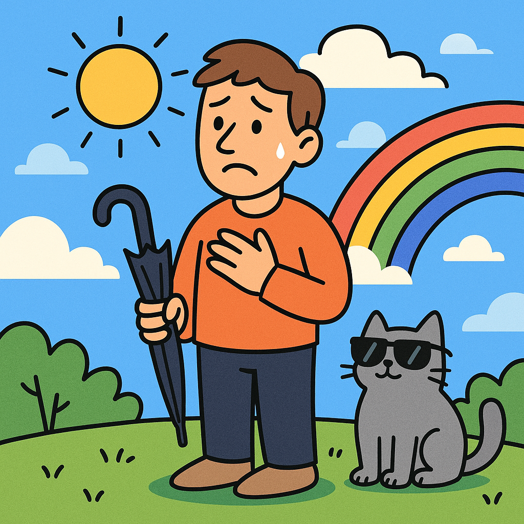 Бывало такое? Всё вроде бы отлично: работа идёт, любимый человек рядом, даже автобус пришёл вовремя… И ты такой: “Что-то тут не так… Сейчас точно что-то случится.” Поздравляю, у тебя — синдром тревожной радости. Это когда мозг не верит, что может быть просто хорошо. ✅ 1. Замечай, что сейчас всё нормально — и это ок Прямо говори себе: “Да, сейчас спокойно. Да, мне хорошо. И я не обязан платить за это болью.” ✅ 2. Радость — не грех, а ресурс Когда тебе хорошо, ты заряжаешься. А не становишься “уязвимым”. Хочешь быть полезным? Начни с наполнения. ✅ 3. Замени “подвох” на “поддержку” Если что-то случится — ты справишься. Но пока не случилось — не нужно жить в ожидании беды. Это всё равно что носить зонт при солнечной погоде. Вдруг дождь. А вдруг нет? Радоваться — не страшно. Страшно — забыть, как это делается. Позволь себе кайфовать от простого. Без объяснений. Без страха. Ты не обязан страдать, чтобы заслужить свет. Хочешь — сделаю картинку: мультяшный человек стоит на солнце с тре