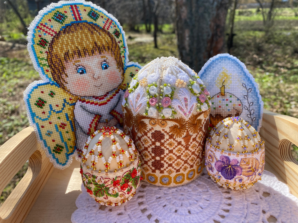 Поздравляю всех причастных со Светлым праздником Пасхи! Добра, любви и мира в ваши дома! Мой канал о вышивании и рукоделии, поэтому хотелось бы поделиться с вами радостными наблюдениями. Очевидно, что когда я вышиваю любой процесс, я размышляю, как я хотела бы оформить его. Когда я только начинала вышивать, то почти все свои работы я оформляла в рамы или в подушки. Позднее открыла для себя возможности прикладного оформления во что-то прикладное: салфетки, скатерти, косметички, полотенца и пр. Потом был и есть этап вышивки в рулон, потому что это компактно, можно возить с собой, удобно рассматривать. Несколько лет назад открыла для себя дивный мир вышивания с целью оформления в елочные игрушки. И вот в этот момент, я стала рассматривать для себя варианты вышивки для создания интерьерных композиций для других праздников и просто сезонов. И, конечно, мне хотелось вышивать что-то для Пасхи. На тот момент (а это точно более 10 лет назад), в наборах производителей и в схемах дизайнеров был