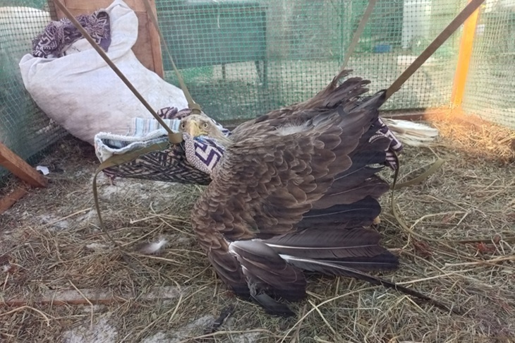 Как отмечают специалисты, орлану стало уже лучше - птица начала шевелить лапками.