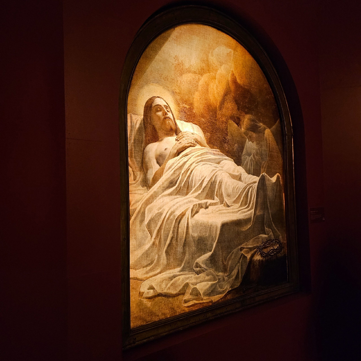 Трагическая и таинственная работа К.Брюллова «Христос во гробе» написана в 1845 году по заказу генерал-губернатора Финляндии графа Александра Адлерберга. Выставлялась в его домовой церкви. Картина написана в технике транспарент. Для полного эффекта полотно должно подсвечиваться сзади. После убийства императора Александра II Адлерберг уехал в Германию, забрав с собой «Христа». С 1935-го по 2002-й год картина хранилась в православном приходе в Брюсселе🇧🇪. Только несколько лет назад эксперты Русского музея подтвердили авторство🖌️ кисти Брюллова. Картина «Христос во гробе», может стоить до 10 млн долларов. И это её первая выставка! Со дня её сотворения! Ты смотришь на неё и видишь не смерть, а всего лишь сон. А за ним Воскресение Христово! И жизнь Вечную! ©𝔈𝔩𝔢𝔫𝔞 𝔇𝔢𝔪𝔢𝔫𝔢𝔳𝔞