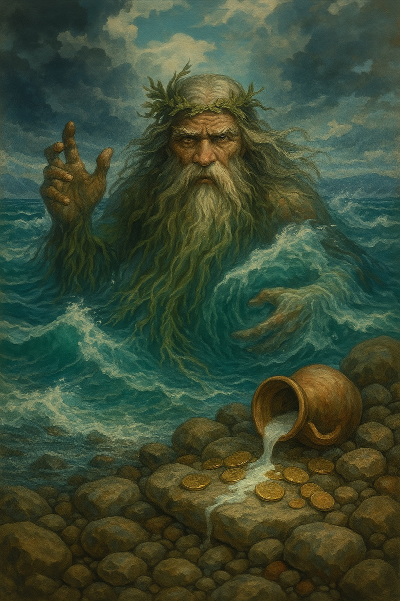 На берегу самого глубокого озера жила маленькая девочка Дарима. Каждое утро она помогала отцу чистить сети, а по вечерам слушала, как старейшины рассказывают о седобородом старике, который живёт на дне Байкала. Говорили, что борода у него из самых длинных водорослей, а глаза светятся, как два лунных блика на воде. Однажды, когда отец ушёл на рыбалку, поднялся страшный шторм. Волны стали высокими, как горы, а ветер завывал так, будто сам дух озера сердился. Дарима увидела, как лодку отца бросает, как щепку, и решила помочь. Она вспомнила слова бабушки: "Когда Байкал гневается, нужно задобрить его дарами". Быстро набрав в берестяной кузовок горсть монеток, что копила на новый пояс, кусочек свежего масла и самое вкусное молоко, девочка побежала к скале Шаман-камень. Волны уже лизали её ноги, когда она стала бросать дары в бурлящую воду. "Дедушка Байкал, - прошептала она, - возьми мои подарки и спаси папу!" Вдруг волны успокоились, будто кто-то огромный провёл рукой по поверхности воды. Из