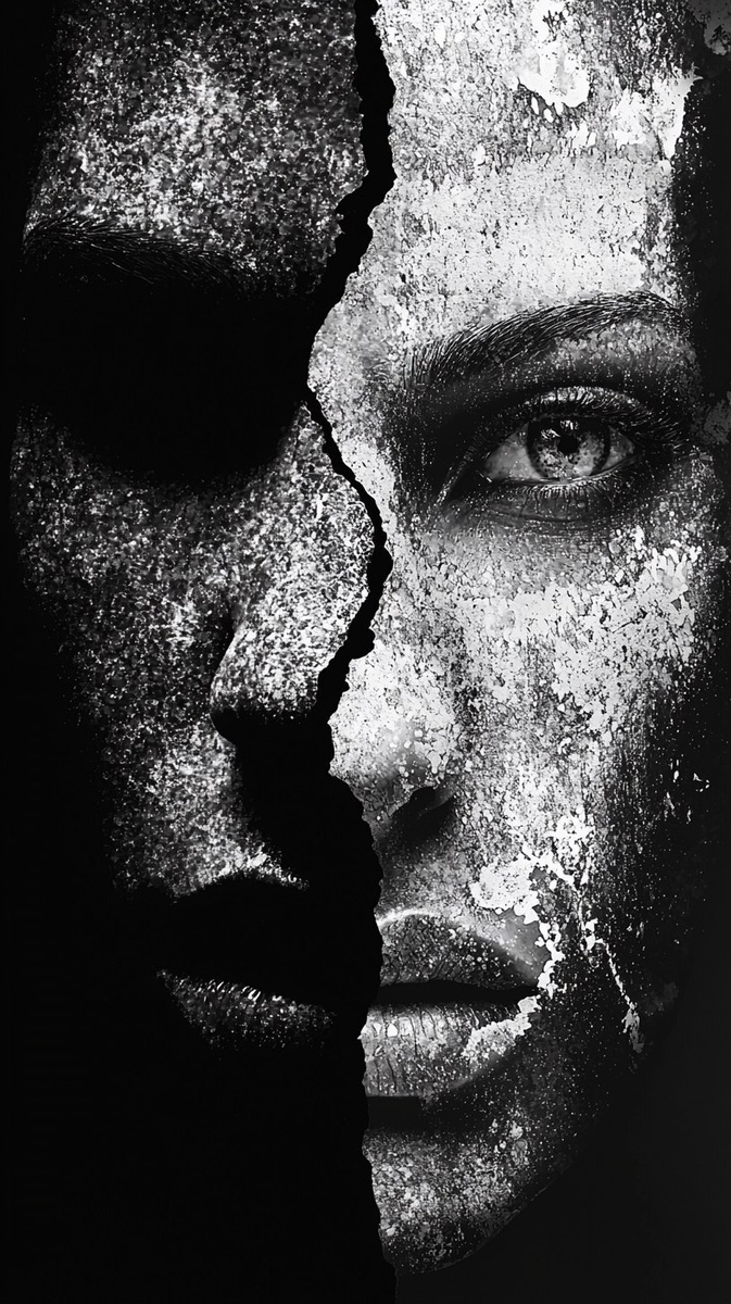 Создано на основе запроса: abstract shadowy faces representing envy, hate, and resentment, merging into darkness, emotional and haunting