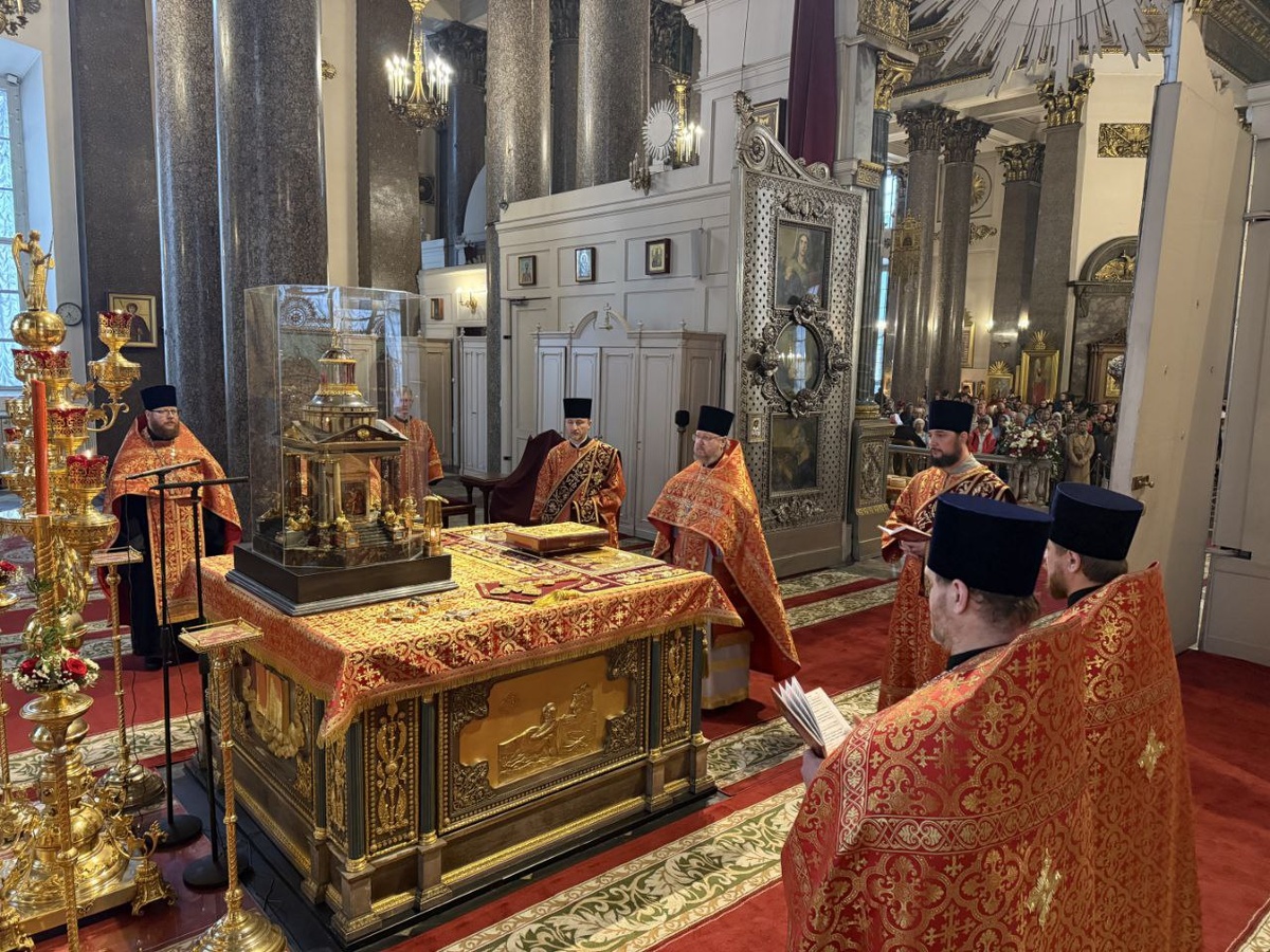 Вечером в праздник Светлого Христова Воскресения, 20 апреля, протоиерей Андрей Герасимов в сослужении духовенства совершил Пасхальную великую вечерню в Казанском кафедральном соборе.