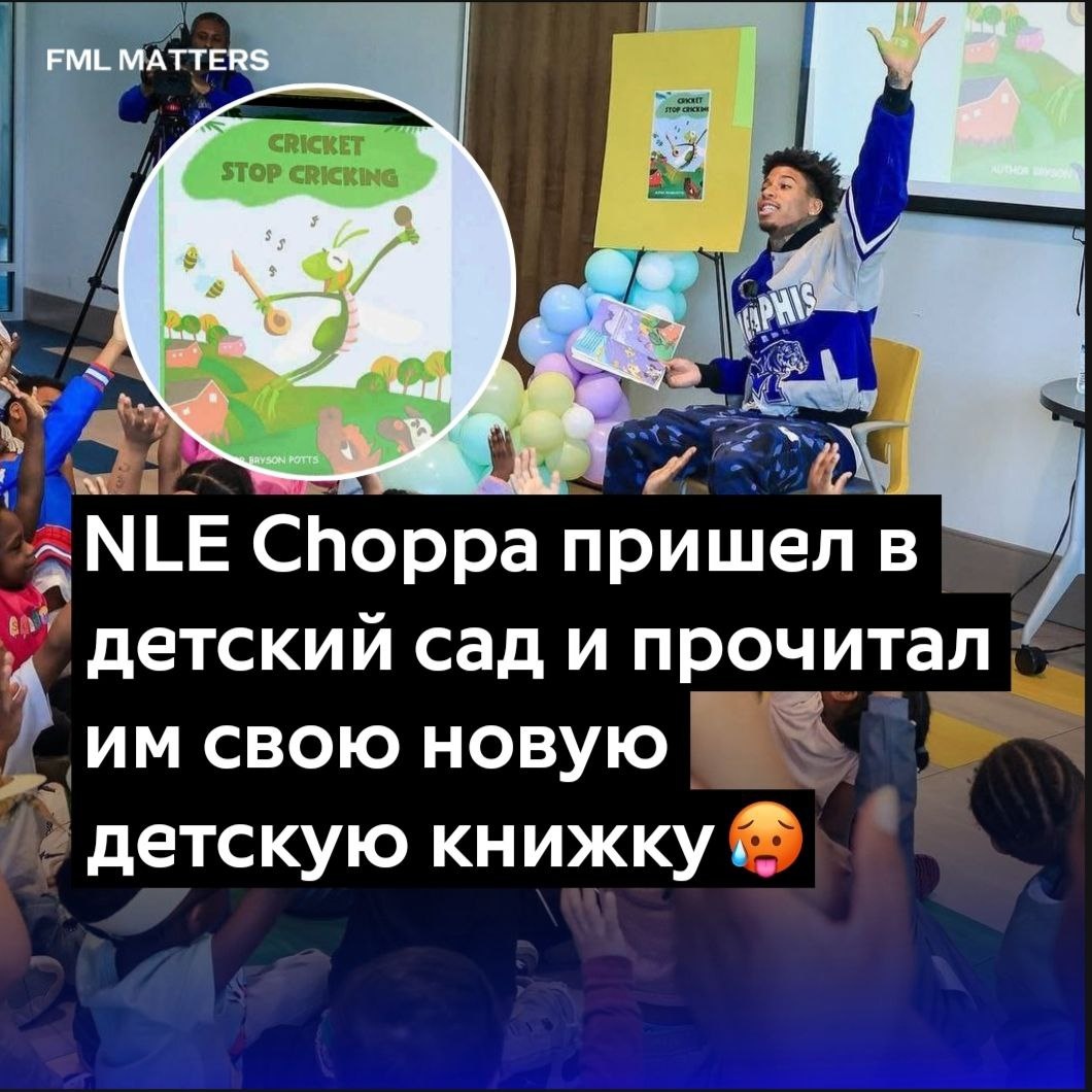 😧 NLE CHOPPA ПИШЕТ ДЕТСКИЕ КНИЖКИ! Чоппа посетил детский сад, чтобы лично прочитать детям отрывки из своей дебютной детской книги «Сверчок, перестань стрекотать». «Я очень взволнован.. Вы скоро сможете прочитать эту книгу! Я планирую выпустить её совсем скоро. Это моя первая книга, и она оказалось, именно для детей», — сказал Чоппа 💀 FML MATTERS