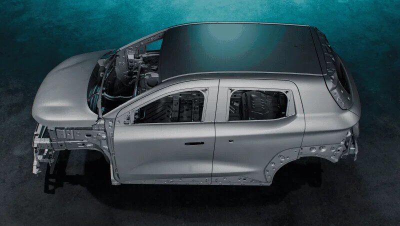 Необходимый запас прочности получили сочетанием пяти конструкционных материалов. В наиболее ответственных местах каркас «Атома» усилен деталями, выполненными методом горячей штамповки из стали класса PHS с пределом текучести свыше 980 МПа. Это части пола, переднего тоннеля, элементы боковин и зон безопасности, брусья в дверях. Другие компоненты кузова сварены из улучшенной высокопрочной стали AHSS (410–980 МПа) и высокопрочной низколегированной стали HSLA (300–410 МПа). Внешние панели отштампованы из мягкой высокоуглеродистой стали MILD (около 300 МПа), а в порогах используется ещё и алюминий.