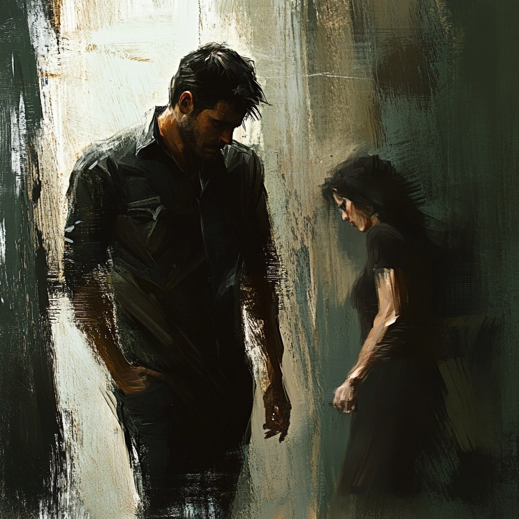 Создано на основе запроса: man character age 30, standing and looking at ground , lady is screeming on him and crying , high qulity , Alvaro