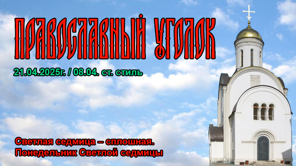 Светлая седмица – сплошная. Понедельник Светлой седмицы. День памяти Апостолов от 70-ти Иродиона, Агава, Асинкрита, Руфа, Флегонта и Ерма (Ермия). День памяти Святителя Ни́фонта Печерского, епископа Новгородского. День памяти Преподобного Руфа Печерского, затворника. День памяти Мученика Павсили́па. День памяти Святителя Келести́на I.