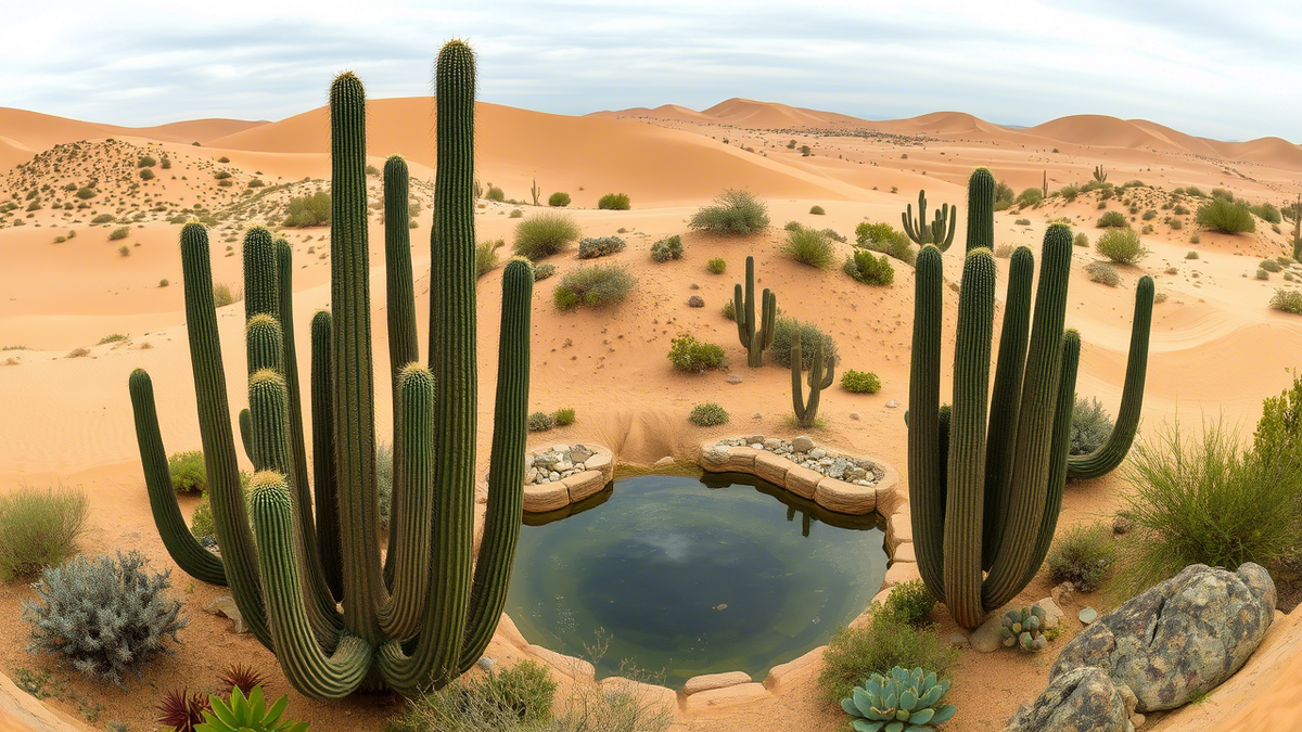 Теперь про стебли — здесь кактусы устроили настоящий водный банк. Внутри не просто мякоть, а сложная система резервуаров с особым слизистым гелем, который удерживает молекулы