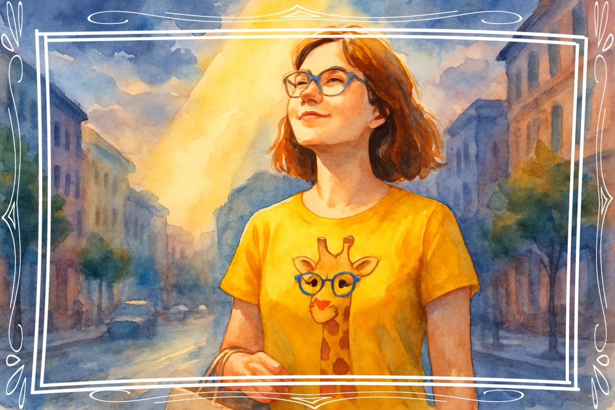 Через пару дней я брела мимо витрины магазина. И увидела прекрасную футболку. Ярко-желтую, с дурацким мультяшным жирафом в очках. Абсолютно не «мой» стиль. Несерьезная, детская.