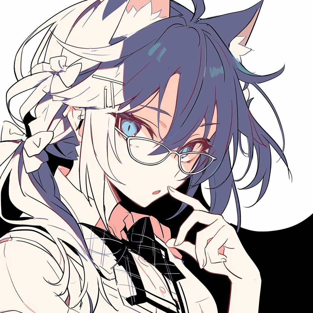Создано на основе запроса: headshot illustration of an androgynous anime girl with soft yet defined facial features, large upward-tilted eyes with long eyelashes, subtle confident expression, blue-black hair styled in regular twin-tails, wearing glasses and a patterned school collar, cat ears, clean and delicate linework, Japanese character design style, expressive but not overly glossy or saturated, gentle color palette, white background, balanced blend of femininity and boyish charm, light anime aesthetic --- Автоперевод: Хедсшот иллюстрация андрогинной аниме-девушки с мягкими, но определенными чертами лица, большими глазами с верхним нагнем Как тебе такое изображение? 🤔 https://dzen.ru/id/65c0c65c86e4f837c27b24d7 #ИИ #AI #нейросеть #midjourney #art
