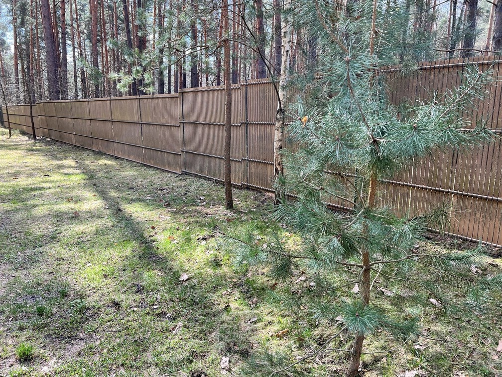 Особенно гармонично смотрятся коричневые заборы на фоне зеленой растительности. Этот природный тандем создает ощущение естественности и экологичности. Деревянный забор теплого орехового оттенка как будто сам вырастает из земли, становясь органичной частью ландшафта.