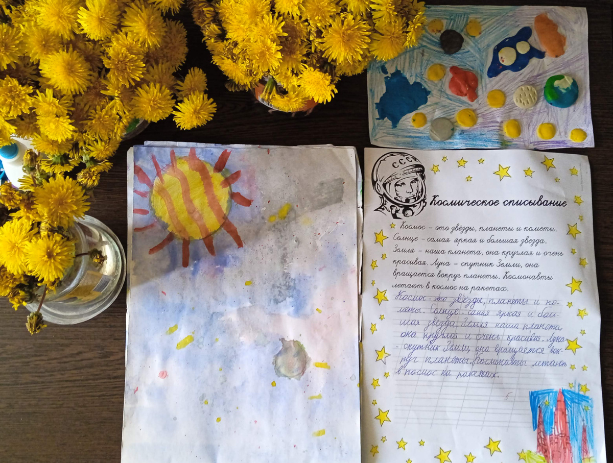Всем привет! Сегодня я напишу дневник. В нём будет рассказываться о моих делах, куда я сходил и т. д. А также покажу свои "космические" поделки прошлой недели. Ко Дню космонавтики у нас в школе было "Космическое списывание", за которое я получил "пятёрку". На уроке ИЗО в прошлый понедельник мы также рисовали космос. А на уроке технологии делали пластилиновую аппликацию "Космос". В субботу и воскресенье у нас выходные. Как я провёл первый выходной? Вначале проснулся, потом умылся, поел, почистил зубы. Дальше пошёл гулять, собирал букеты цветов, фотографировал, играл в разные игры. Затем пришёл домой, поел. Попробовал из ткани вырезать, вязать, хочу быть домашним поваром. Поел, помылся и лёг спать! Сегодня делал уроки, писал сообщение о достопримечательностях Москвы. Взял в библиотеке книгу Н. Носова "Мишкина каша". Интересная, рассказы смешные. Так почти каждый день бывает, жизнь хорошая. Канал хочу развивать, мне хочется писать здесь, когда есть время. Ещё люблю позаниматься с утра на