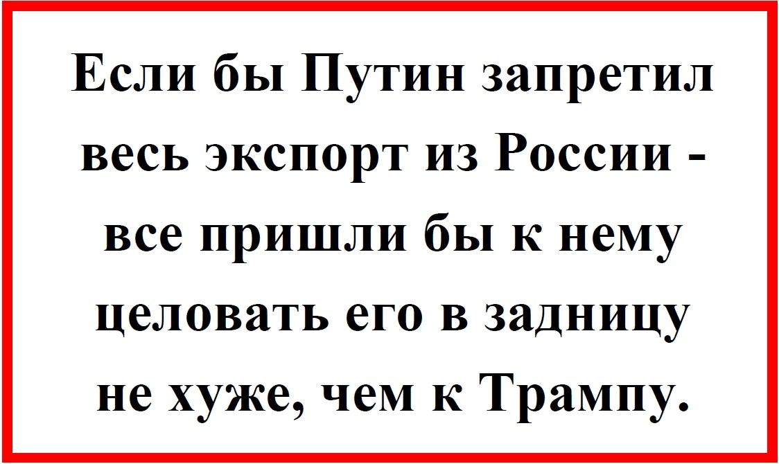 Если бы Путин запретил весь экспорт из России - все пришли бы к нему целовать его в задницу не хуже, чем к Трампу.