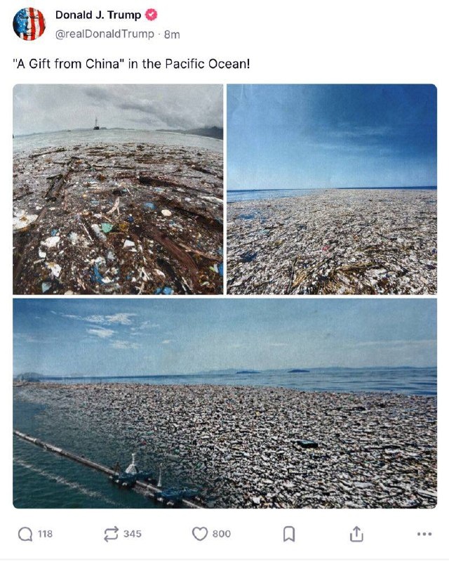 Trump accuses China of POLLUTING Pacific Ocean in Truth post