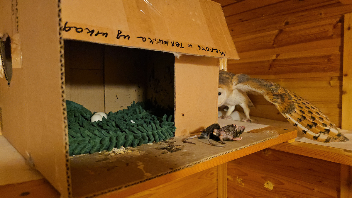 Сипуха Пухня вполне освоилась на своём месте. Одну из двух мышей она съела, а вторую перепрятывала в течение дня. Ко мне сипуха совсем не добра. Покачивания из стороны в сторону у сипух означает угрозу и готовность к нападению. Так что, нужно быть очень внимательным при общении. Сова Ёль наладила свой аппетит. Ей очень нравится что я кормлю её маленькими кусочками с рук, а не просто кладу рядом еду и ухожу. Видео можно посмотреть без рекламы в Дзен Премиум И по ссылке бесплатно на Рутубе