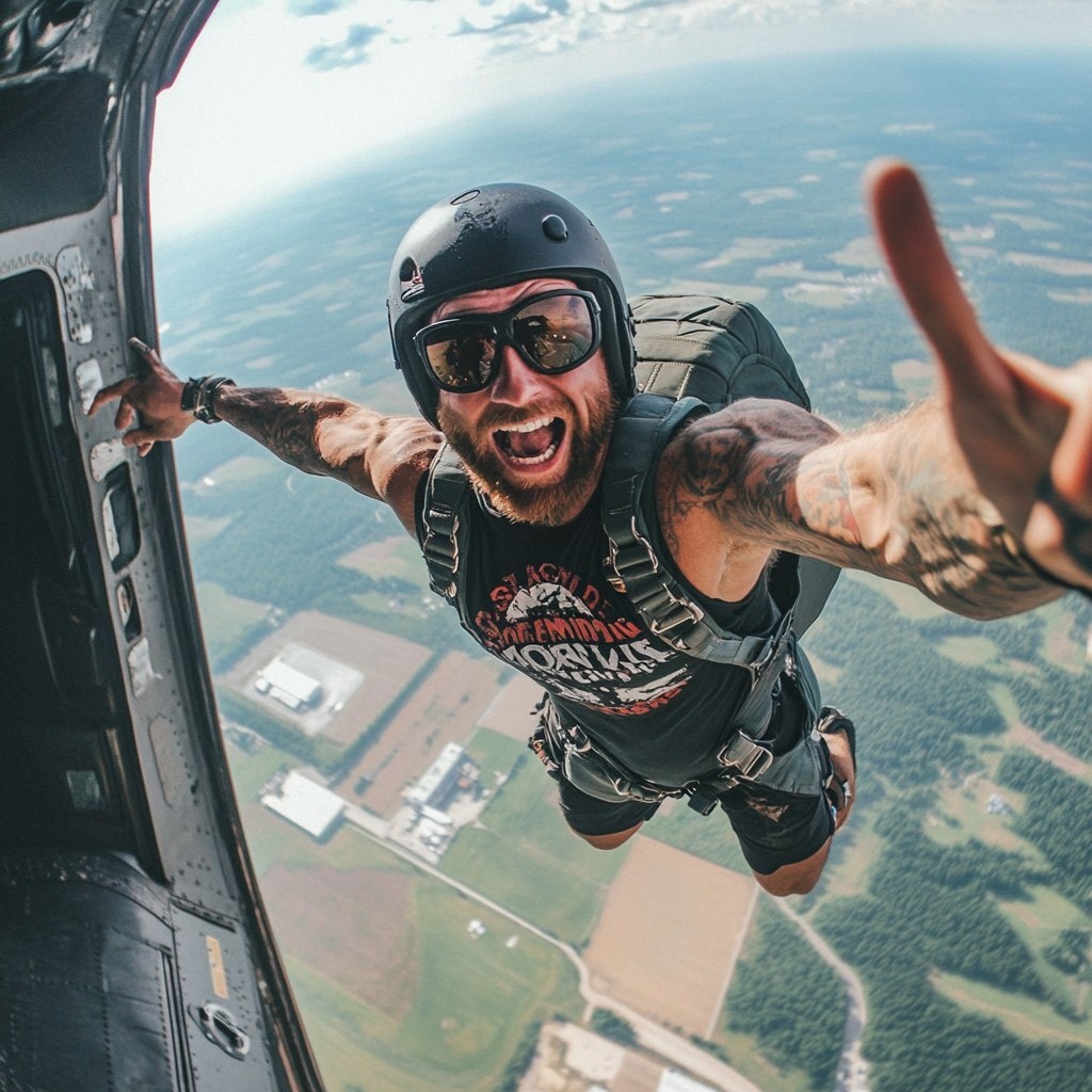 Создано на основе запроса: a photo of a man 30-35 enjoying jumping from a plane