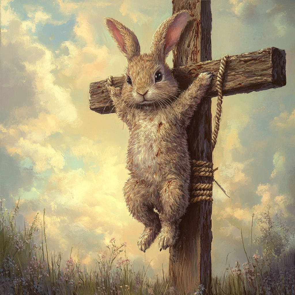 Создано на основе запроса: Easter bunny dying on the cross --- Автоперевод: Пасхальный кролик умирает на кресте Классно вышло? 🤔 https://dzen.ru/id/65c0c65c86e4f837c27b24d7 #ИИ #AI #нейросеть #midjourney #art