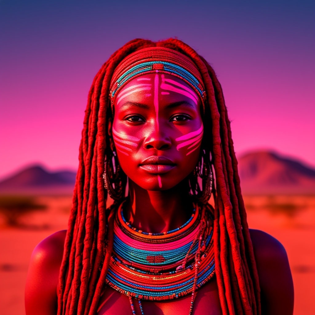 Обряд нанесения красной охры. Женщины химба ежедневно наносят на тело и волосы смесь красной охры и животного жира. Этот ритуал не только служит защитой от солнца и насекомых, но и является символом культурной идентичности и связи с традициями. Смесь придаёт коже и волосам характерный красноватый оттенок, который считается признаком красоты и здоровья.
