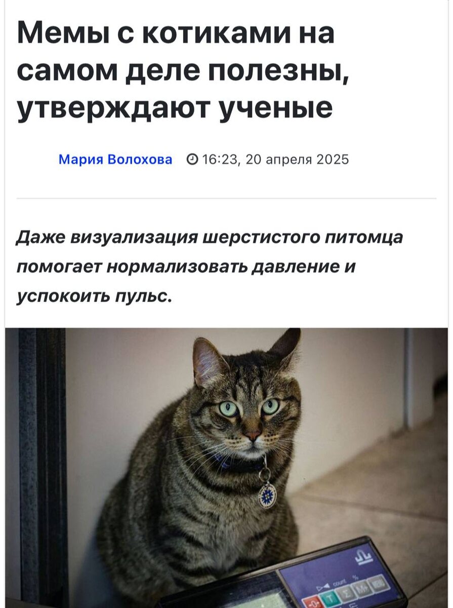 ⚠️Исследование подтвердило, что мемы с котятами положительно влияют на психическое здоровье