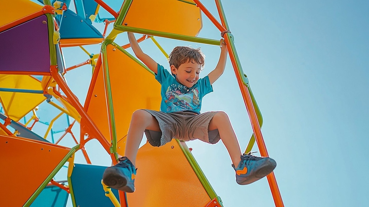 Создано на основе запроса: a bright and engaging image for an article titled: Scaling Success: How Futuristic Climbing Structures Build Upper Body Strength in Young Children --- Автоперевод: Яркий и увлекательный изображение для статьи под названием «Успех масштабирования: как футуристические конструкции скалолазания» строят силу верхней части тела у маленьких детей Красиво выглядит? 🤔 https://dzen.ru/id/65c0c65c86e4f837c27b24d7 #ИИ #AI #нейросеть #midjourney #art