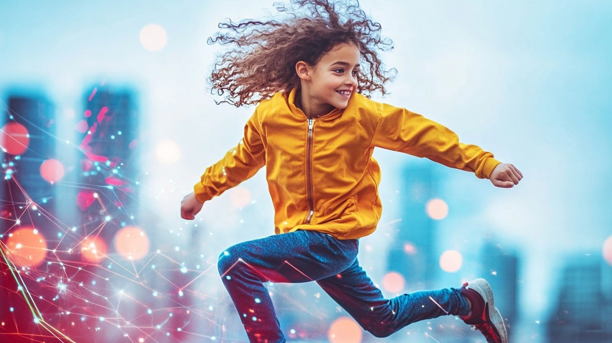 Автоперевод: Яркий, футуристический и увлекательный образ для статьи под названием: Курсы препятствий: забавный путь к повышению сердечно -сосудистого здоровья у детей