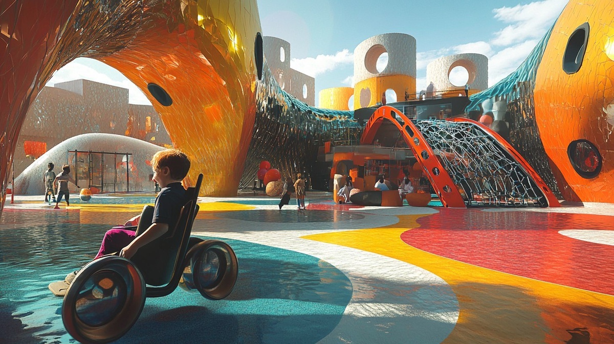 Создано на основе запроса: a bright, Futuristic and engaging image for an article titled: Playgrounds for All: Designing Inclusive Spaces