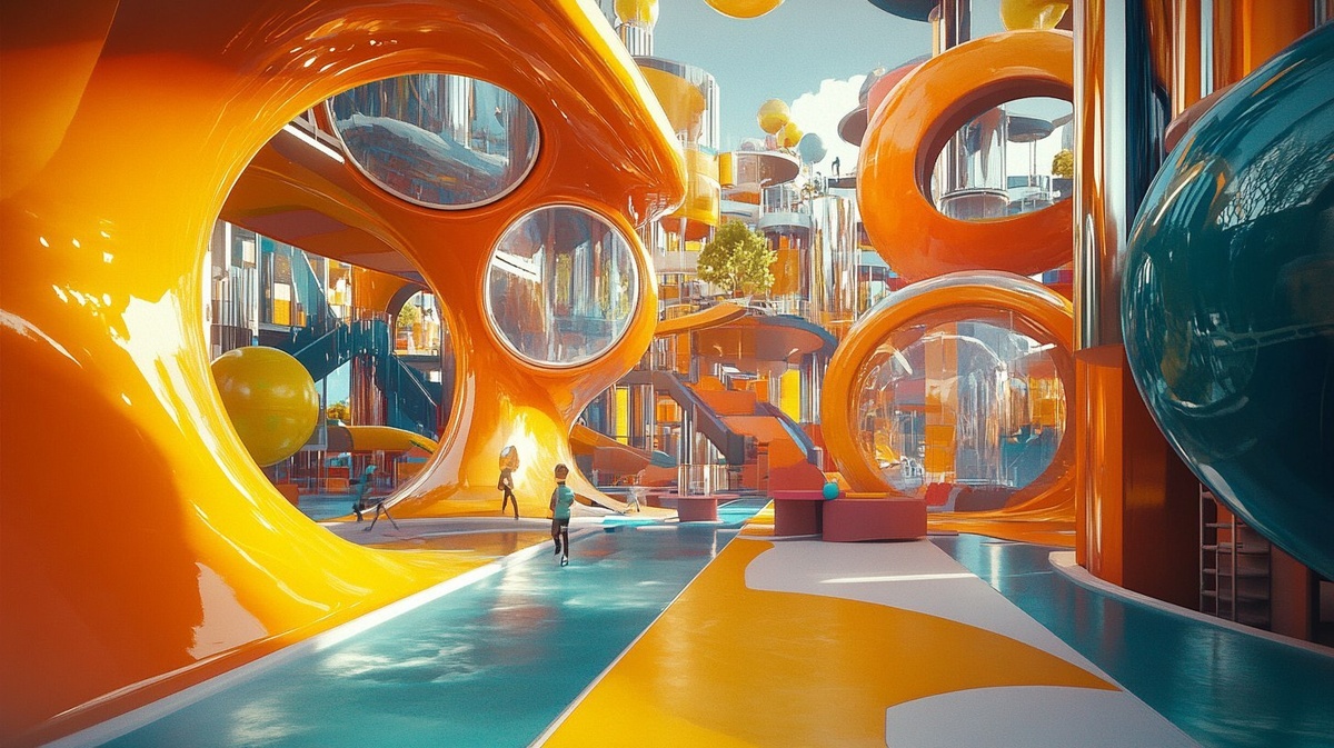 Автоперевод: Яркий, футуристический и увлекательный образ для статьи под названием: Завоевание игровых площадок: как проблемы укрепляют уверенность и самооценку у детей