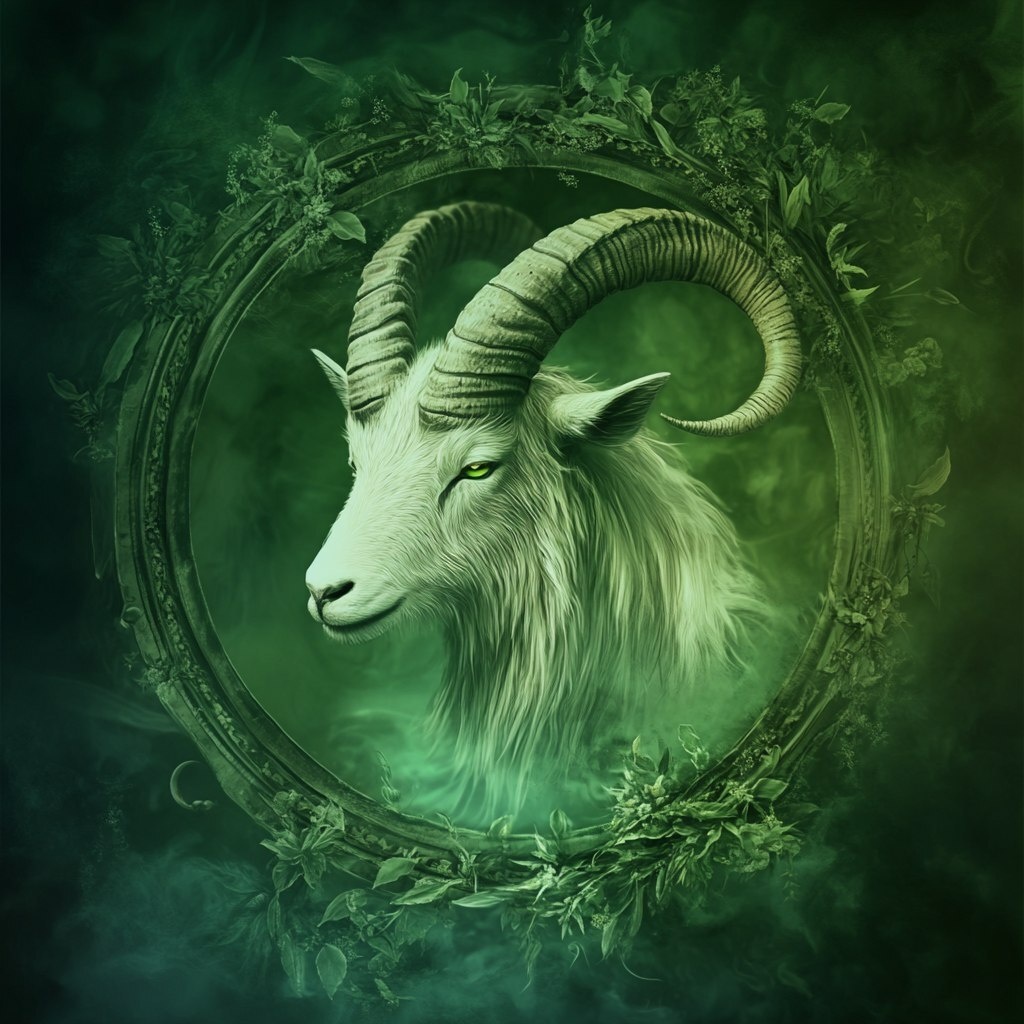 Создано на основе запроса: A realistic 16:9 image of the zodiac sign CAPRICORN and green background inspired by Nature --- Автоперевод: Реалистичное изображение Знака Зодиака и зеленый фон, вдохновленные природой, вдохновленные природой Хорошо выглядит? 🤔 https://dzen.ru/id/65c0c65c86e4f837c27b24d7 #ИИ #AI #нейросеть #midjourney #art