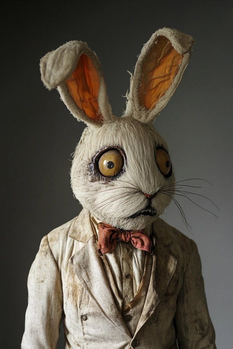 Создано на основе запроса: an old easter bunny costume from the 1940s, scary --- Автоперевод: Старый костюм пасхального кролика 1940 -х годов, страшный Круто вышло? 🤔 https://dzen.ru/id/65c0c65c86e4f837c27b24d7 #ИИ #AI #нейросеть #midjourney #art