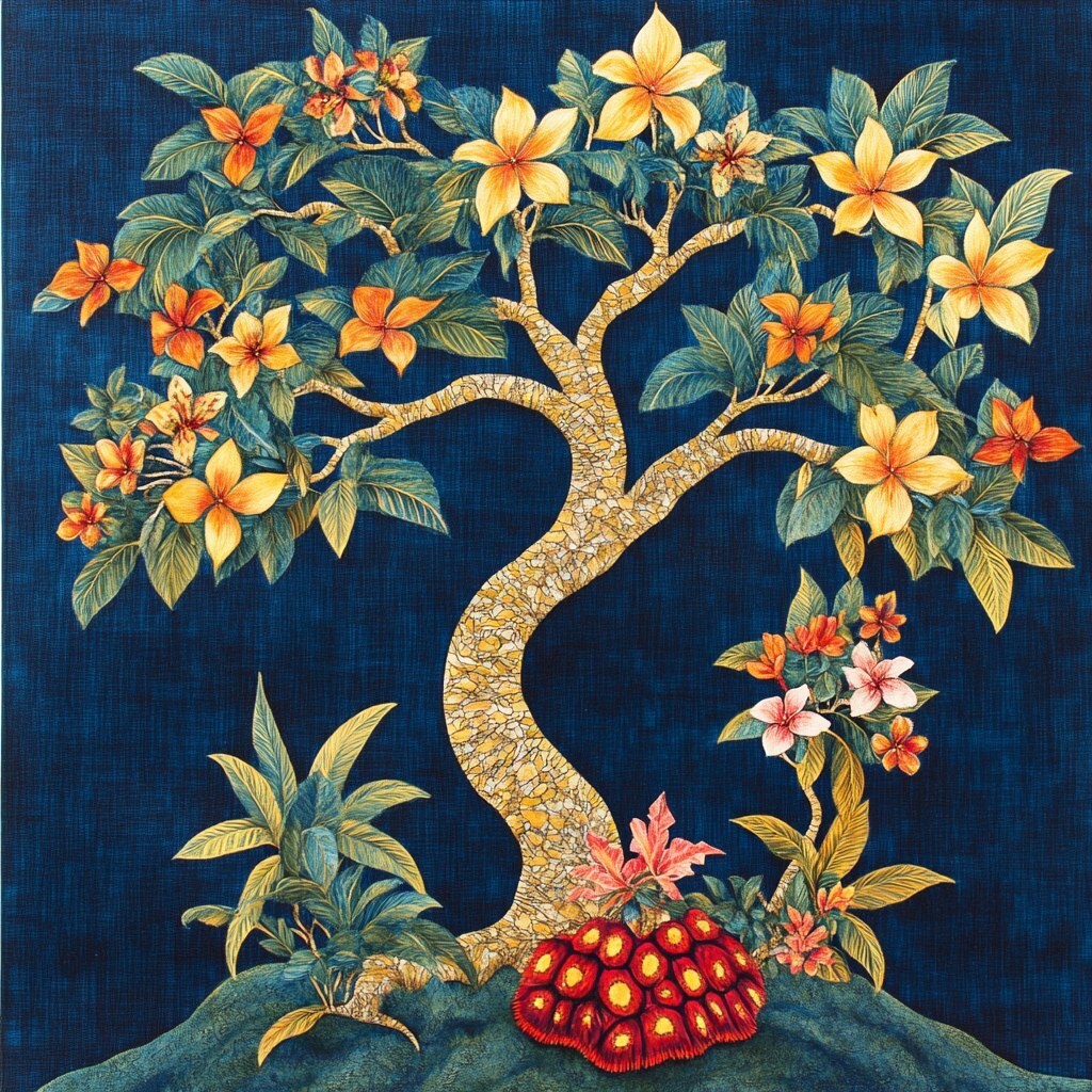 Создано на основе запроса: Create an exotic design with Paduak tree with crooked trunk, pLACE plumeria, Rafflesia Arnoldi FLOWERS AROUND THE BASE OF THE TREE and with rich colors of red, gold, yellow and green against a rich midnight blue background --- Автоперевод: Создайте экзотический дизайн с деревом Paduak с кривой туловищем, Place Plumeria, Rafflesia Arnoldi Flowers вокруг основания дерева и с богатыми цветами красного, золотого, желтого и зеленого на богатом полуночном синем фоне Отлично вышло? 🤔 https://dzen.ru/id/65c0c65c86e4f837c27b24d7 #ИИ #AI #нейросеть #midjourney #art