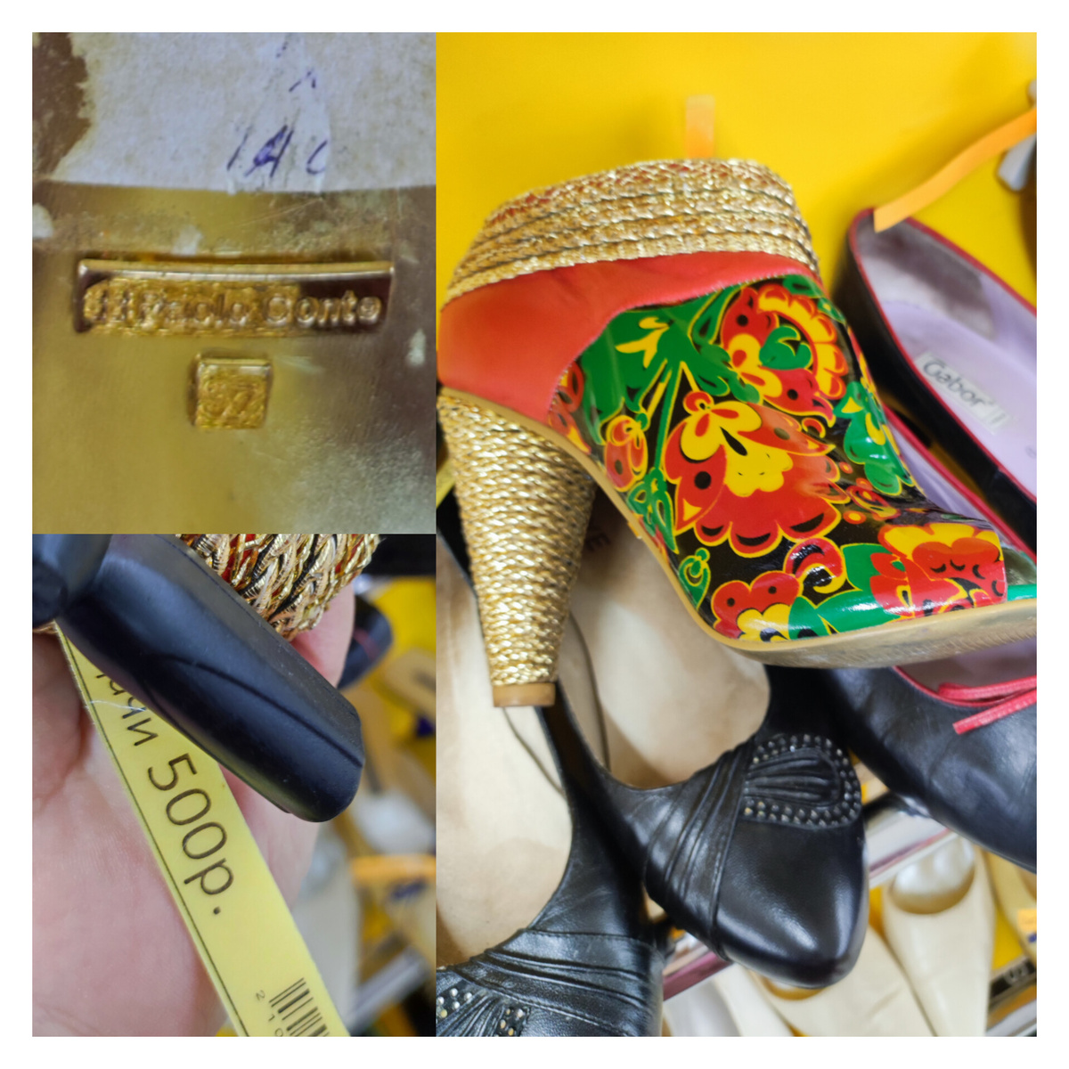 Всем привет! Сегодня собрала подборку вещей из Секонд Хенда, которые меня заинтересовали, но я их все равно не купила. Причины всегда одни и те же- брак или невысокая ценность на перепродаже. А иногда никаких причин нет, но покупать все равно не хочется. 1. Полуботинки сувенирные "Хохлома" Сомневаюсь, что в них можно передвигаться. На подошве гравировка бренда, но я не смогла прочитать название, интернет тоже не захотел искать. Цена 500 рублей 2. Платье шёлковое Basix. Про модель платья промолчу, такие обтягивающие фасоны у меня продаются. Но шёлк уже весь в затяжках, платье не восстановить. А вот цвет очень красивый. Сам бренд Basix специализируется на пошиве вечерних платьев, цены от 15000 рублей. 3. Бутылка. Цена 50 рублей. Заинтересовала бутылка, напомнила мне бутылку для соусов. Не понятно, зачем она здесь продается. Оказалось, что это бутылка для воды. Но зачем такой высокий носик... И опять все просто объясняется, благодаря интернету: Бутылка имеет крышку с длинным соплом