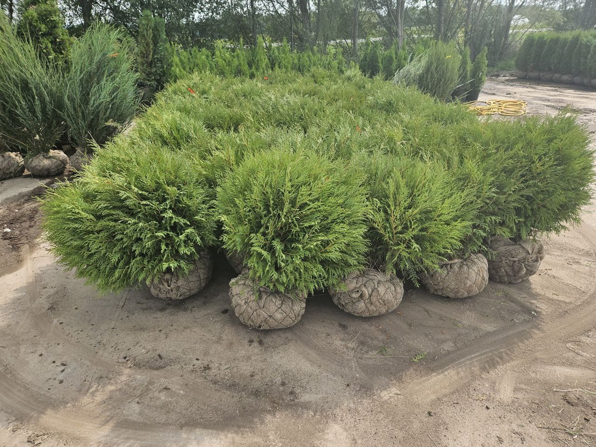 Туя Вудварди (*Thuja occidentalis 'Woodwardii'*) – популярный сорт западной туи, который ценится за свою компактную шаровидную форму, неприхотливость и высокую декоративность. Это хвойное растение станет отличным решением для создания живых изгородей, оформления аллей или солитерных посадок в саду.