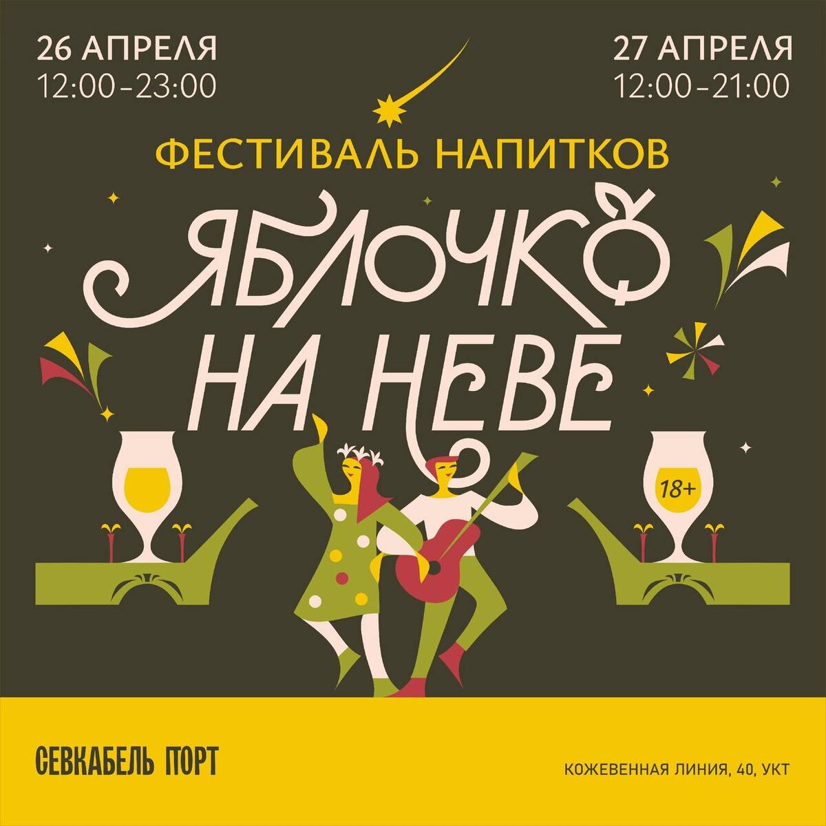 В эти выходные в Севкабеле пройдет интересный фестиваль Яблочко на Неве, будет интересная музыкальная программа, турнир по пинг-понгу и гастрономические вкусности, Jampol сыграют 27/04 в здании УКТ в 19:30 Билеты: - https://vk.cc/cKOtWa