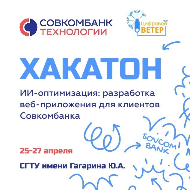 Хакатон Совкомбанк Технологии ИИ-оптимизация: разработка веб-приложения для клиентов Совкомбанка Необходимо разработать веб-приложение с использованием AI для обработки и анализа трат клиентов. Решите эту задачу и сделайте общение клиентов с мобильным приложением Совкомбанка более комфортным! ТОП-3 команды получат денежные призы! Все участники - экспертную оценку и фидбек от представителей Совкомбанк Технологии, паки стильного мерча. Правила участия: команда от 2 до 5 человек. Дата проведения: 25-27 апреля. Место проведения: Саратов, СГТУ имени Гагарина Ю.А., 5 корпус. Подробная информация и регистрация: https://hackrus.ru/930 #хакатон #hackathon #hackathonsrus #хакатонырус хакатоны.рус — открой с нами мир хакатонов