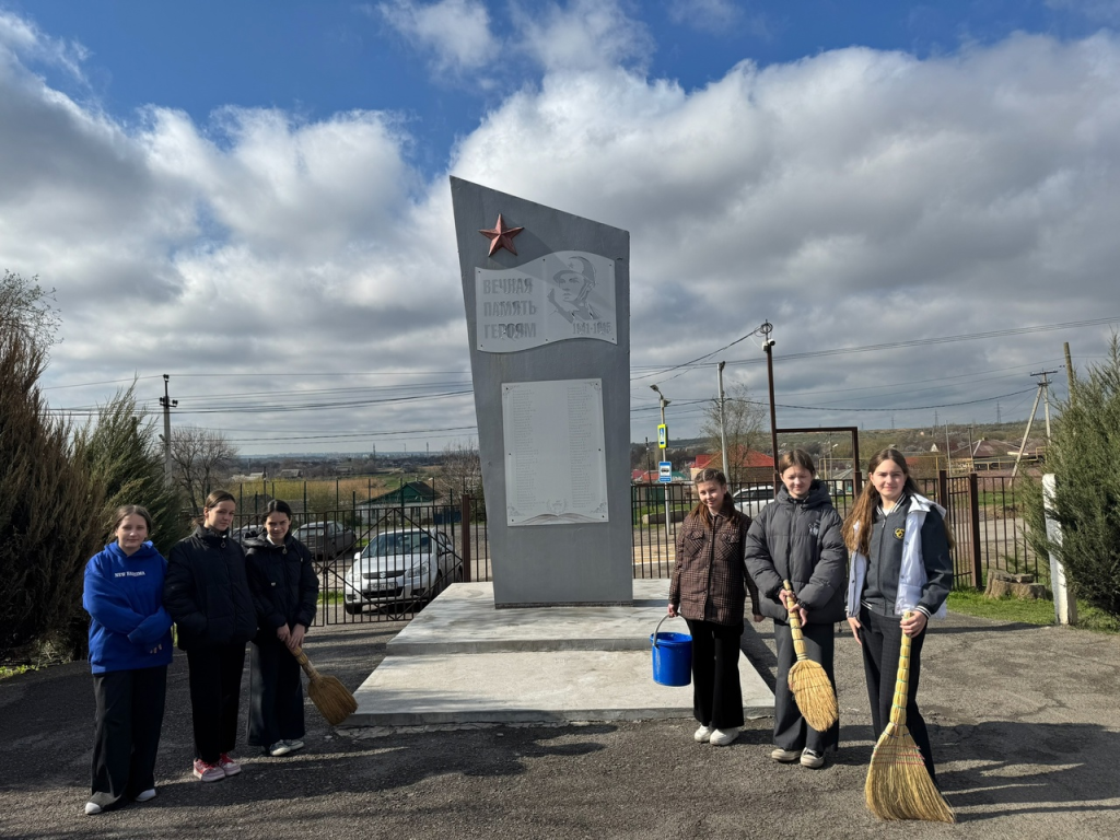Школьники очистили территорию памятника от прошлогодней листвы и зимнего мусора. Благодаря их усилиям мемориал приобрел чистый и ухоженный вид. Субботник прошел в рамках патриотической акции «Дон помнит».