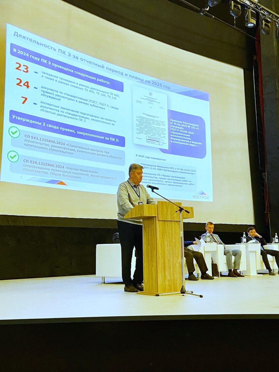 НОСТРОЙ представил отчет о деятельности ПК 3 на очном заседании ТК 465 «Строительство» 👥 В НИУ МГСУ под председательством замминистра строительства и ЖКХ РФ Сергея Музыченко прошло очное заседание технического комитета по стандартизации ТК 465 «Строительство». Председатель ПК 3 «Строительство. Основные положения нормирования» ТК 465 «Строительство», председатель Технического Совета НОСТРОЙ Равиль Умеров выступил с отчетом о деятельности вверенного подкомитета за 2024 год. ЗА ОТЧЕТНЫЙ ПЕРИОД В ПК 3: 🌐проведено 23 заседания по вопросам рассмотрения проектов документов по стандартизации в рамках деятельности ТК 465 «Строительство», а также в рамках смежных технических комитетов, в том числе посредством АИС «ТК 465 «Строительство»; 🌐рассмотрены 24 документа по стандартизации в рамках публичных обсуждений; 🌐проведена экспертиза 7 проектов документов по стандартизации, по результатам выданы положительные экспертные заключения. 👷♂️ Равиль Умеров отметил, что закрепленные за ПК 3