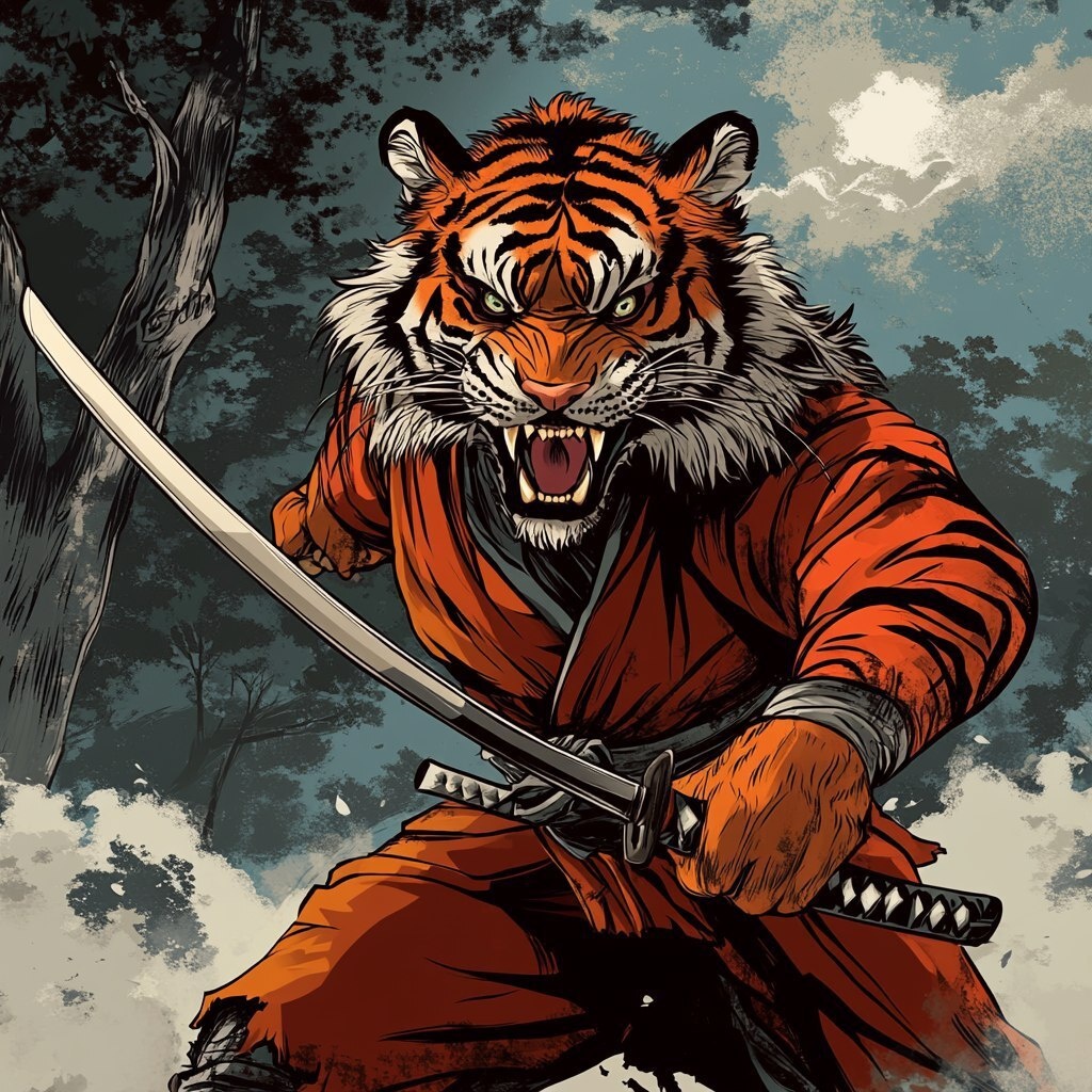 Создано на основе запроса: Angry Samurai tiger zombie comic style cartoon aggressive