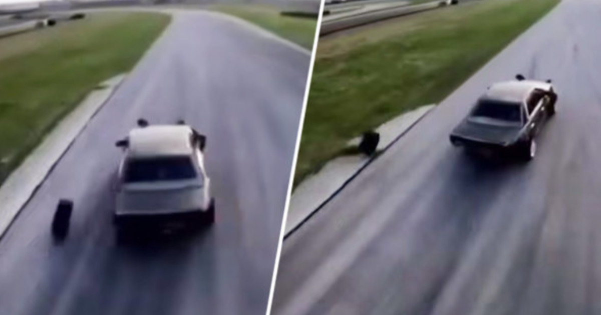 В Санкт-Петербурге на чемпионате по дрифту с машины слетела шина, а потом вернулась обратно. Верим или монтаж? 😮