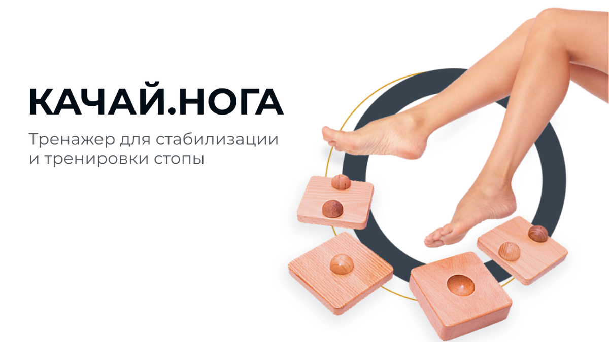 Тренажер КАЧАЙ.НОГА — это инновационный инструмент для укрепления стоп, голеностопного сустава и мышц-стабилизаторов. Его уникальная конструкция имитирует нестабильные поверхности, что делает тренировки одновременно безопасными и эффективными для детей, взрослых и пожилых людей. Вот почему: 1. Адаптивность под любой возраст и уровень подготовки • Для детей (от 5 лет): Тренажер помогает формировать правильную осанку и предотвращать вальгус и плоскостопие. Упражнения с ним развивают координацию и укрепляют мышцы стопы, что особенно важно в период активного роста. Большое количество упражнений с тренажером включают в работу все тело. • Для взрослых: Устраняет последствия сидячего образа жизни, корректирует пронацию/супинацию стопы, снижает нагрузку на колени и поясницу. • После 70 лет: Упражнения на тренажере улучшают баланс, предотвращают падения и замедляют возрастное ослабление связок. Даже при артрозе или диабете тренировки безопасны после консультации с врачом. 2. Безопасность — ключ