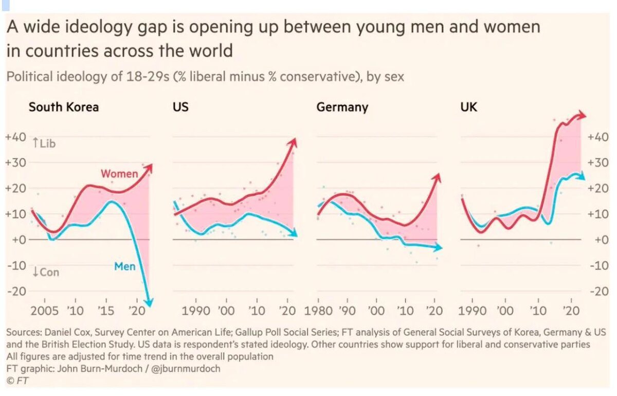 Скуфы в ударе: зумерки массово предпочитают мужиков на 10–20 лет старше, а пацаны с подкастами идут лесом. Ровесники-бойфренды пытаются быть альфачами, наслушавшись Тейта и Маркаряна, но вместо мужественности выдают кринж-перформанс из цитат и понтов. Устав от "доминации" по лекалам YouTube, девчонки разворачиваются к тем, у кого вместо реплик про «настоящих мужчин» — мозги, опыт и налоговая декларация. Поп-культура подыгрывает: в «Белом лотосе» героиня выбирает мужика старше на 30 лет, и никто даже не удивляется — всё понятно. Зумер-парни всё глубже зарываются в «традиции», зумер-девушки — в самостоятельность и здравый смысл. Параллельные вселенные. Южная Корея вообще пошла в разнос: движение 4B — полный отказ от мужчин, свиданий, браков и надежд. Добро пожаловать в мир, где скуф — не оскорбление, а комплимент.
