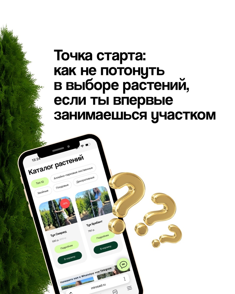 Сотни вариантов, тысячи мнений и пустой участок. С чего реально начать? Вы стоите на своём участке с мечтой о красивом саде, но вокруг столько советов, что голова идёт кругом: «Сажай хвойные!», «Только плодовые деревья!», «Сделай английский газон!» В итоге — страх ошибиться и ничего не делать. Давайте разберёмся, как выбрать растения без стресса и создать сад, который будет радовать годами. Прежде чем покупать первые попавшиеся саженцы, потратьте время на изучение участка: ✔ Где солнце, а где тень? — Полное солнце (6+ часов в день) — для роз, лаванды, большинства плодовых. — Полутень (3-6 часов) — подойдёт гортензия, хоста, папоротники. — Глубокая тень — только специальные теневыносливые растения (барвинок, копытень). ✔ Какая у вас почва? — Песчаная — быстро пропускает воду, потребует частого полива. — Глинистая — долго держит влагу, может потребоваться дренаж. — Суглинок — идеальный вариант для большинства растений. ✔ Есть ли проблемы с ветром или водой? — Если участок продувается, вы