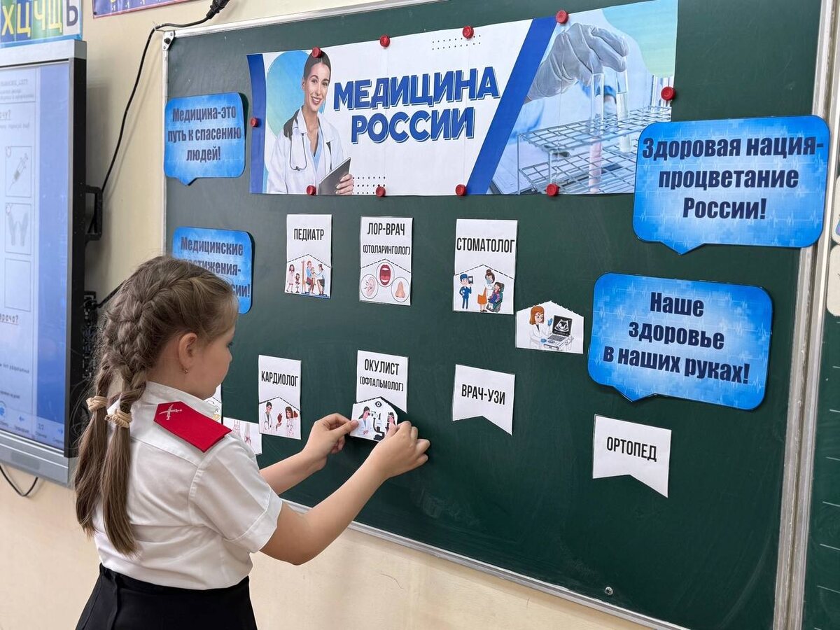 В понедельник, 21 апреля, в нашей школе состоялось очередное занятие внеурочной деятельности «Разговоры о важном». Оно было посвящено развитию медицины в нашей стране. Педагоги рассказали ребятам о достижениях известных российских врачей, разнообразии медицинских профессий, а также применении современных технологий для постановки диагнозов и лечения. Учащиеся посмотрели видео «Путешествие в историю российской медицины: от травников до великих врачей», в котором были обозначены основные этапы развития института медицинской помощи в нашей стране. Помимо этого, учащимся было предложено выполнить интерактивное задание «Правда или вымысел», определив, какие из приведенных высказываний о медицине являются фактами, а какие — мифами 😷🚑🧑⚕️🩺