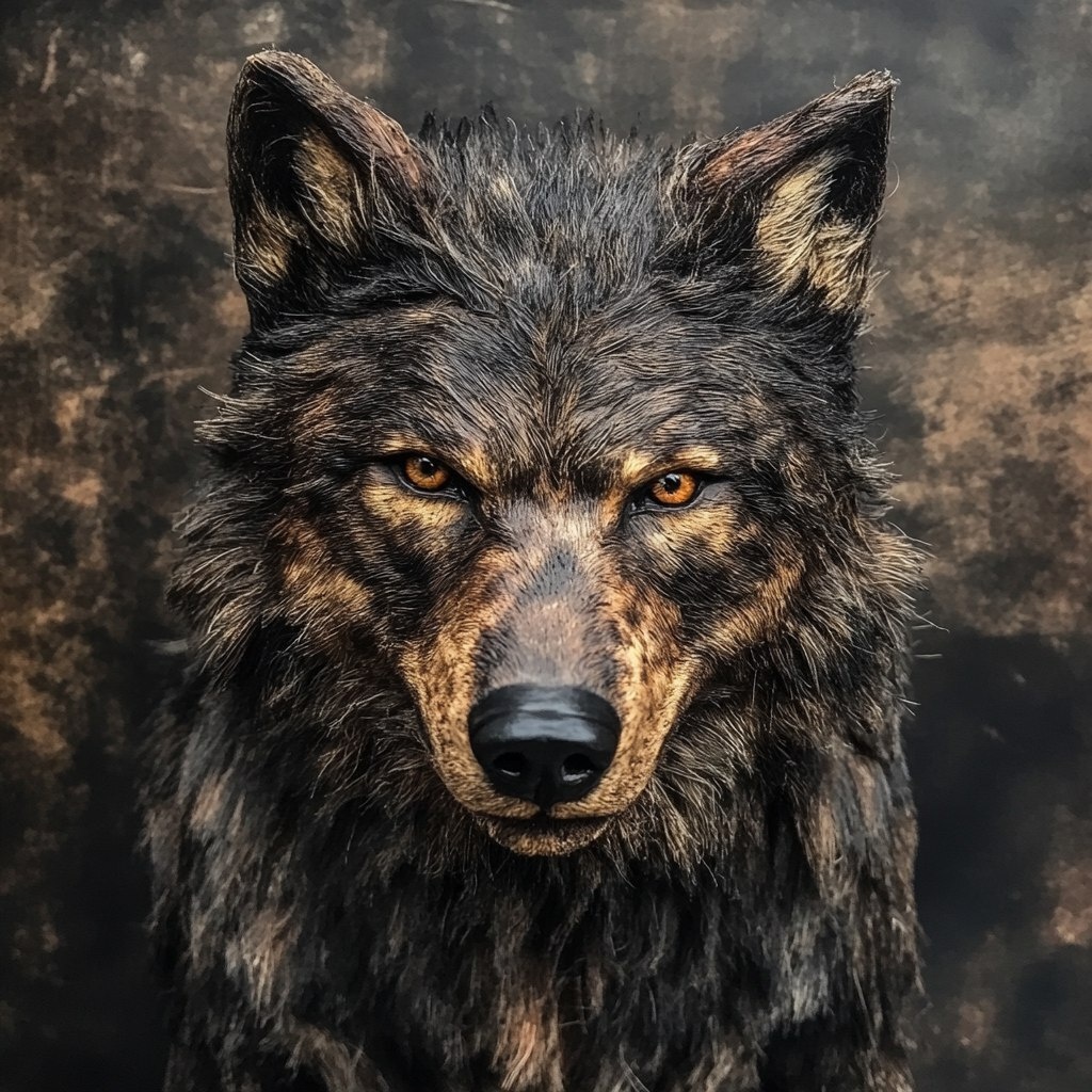 Создано на основе запроса: realistic large dark coffee colored strong dire wolf