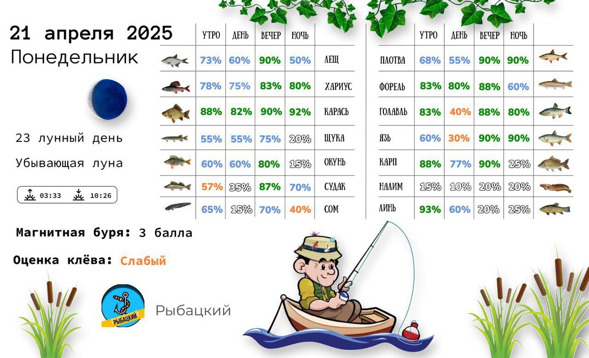 Прогноз клёва на 21 апреля по фазе и состоянию луны ✅