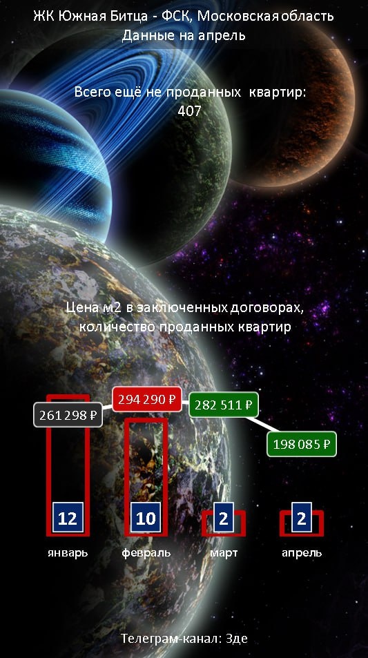Вот тоже интересно. ФСК. ЖК Южная Битца. Скажу сразу, со стройкой никаких проблем. Всё идет по графику, без замечаний. Но только посмотрите, как встали продажи, и даже огромные скидки не помогают, хотя ещё не проданных квартир «как грязи», а значит на любой вкус и цвет. Спрос «умер» от слова совсем. ➕ 📱Витрина готовых справок по надёжности ЖК Зде info; здесь 📱Форум Ззз здесь.