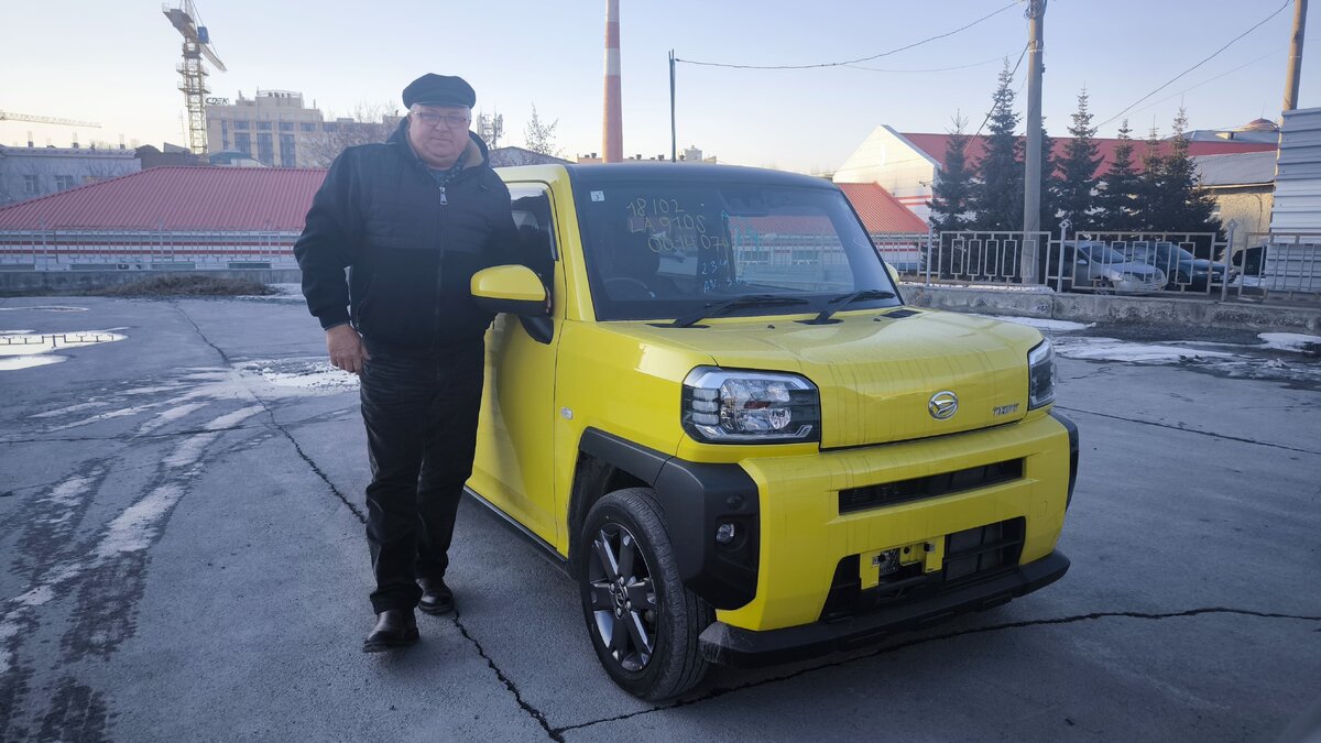 Аббревиатура ТAFT означает Tough Almighty Fourwheeldrive Transport. В переводе с английского - «жесткий всемогущий полноприводный транспорт». Да, не скромненько, но со вкусом. И выбор Сергея из Новосибирска хоть и выглядит оригинальным, особенно в такой веселой расцветке, но он абсолютно логичен. Итак, кей-кар Daihatsu Taft: - модель 2021 года с пробегом 17 000 км в комплектации G TURBO и аукционной оценкой 4,5 балла. Цена с доставкой во Владивосток по текущему курсу составляет ровно 1 000 000 рублей. Это отличная цена. Кто не в курсе, ТАФТ сделан на той же платформе, что и знакомые нам братцы-близнецы Daihatsu Rocky и Toyota Raize. А коробчатый силуэт претендует на сходство с внедорожниками. Плюсуем сюда полный привод, приличный дорожный просвет 190 мм, и довольно большие для кей-кара шины — 165/65R15. Достойны внимания просторный, комфортабельный салон с разными вариантами планировок и подогревом передних сидений. Не забудем и про багажник с умной системой креплений и съемной полкой.