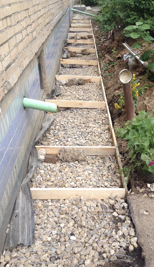 Вот подробный план, как сделать бетонную отмостку своими руками. Он простой, но требует аккуратности.