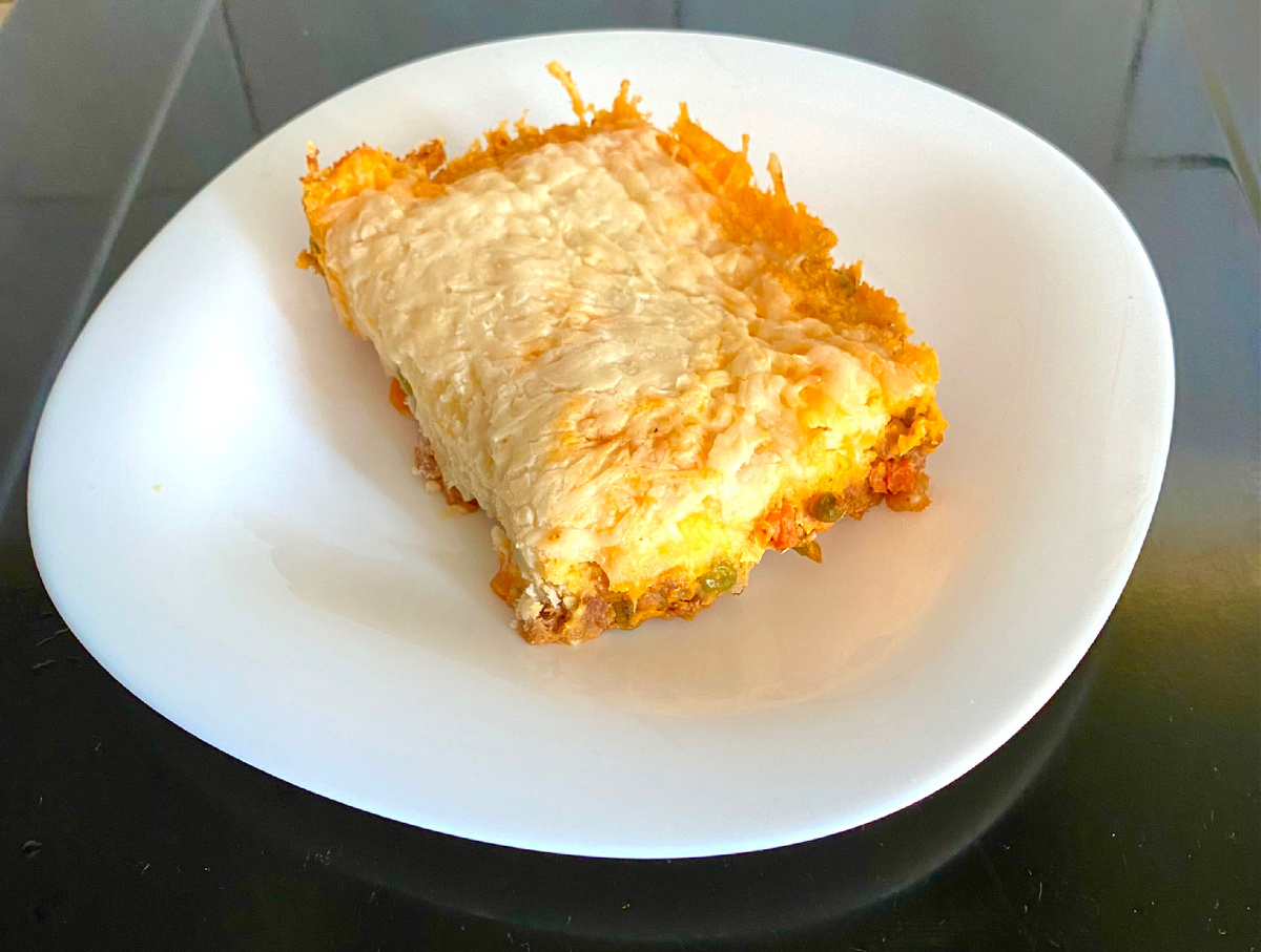 На самом деле пастуший пирог представляет собой картофельную запеканку с мясным фаршем (говядина, баранина) и различными дополнениями: горошек, сельдерей, лук, чеснок, травы, томатный соус. Это блюдо интересно тем, что если дома осталось картофельное пюре после обеда и фарш, то можно быстро сформировать пирог на ужин. Сделать бороздку вилкой сверху и отправить в духовку. Красота и вкусный ужин вас порадует. Сегодня покажу, как готовлю его я. Проверено! Результат понравиться!