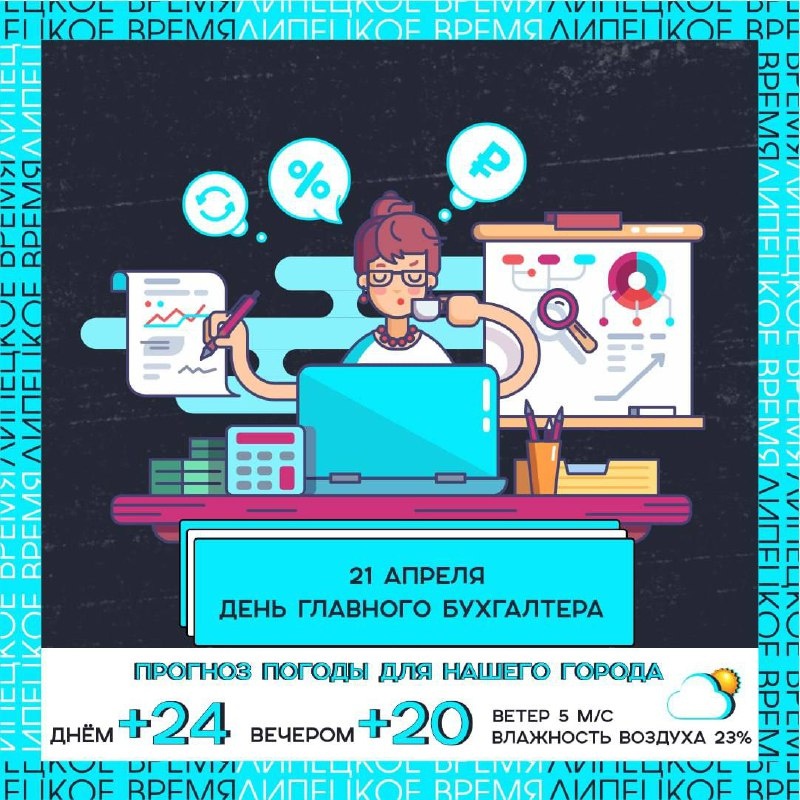 📄Сегодня — День главного бухгалтера! Поздравляем тех, кто каждый день следит за цифрами, отчётами и балансами, обеспечивая финансовую стабильность предприятий. Интересный факт: основатель бухгалтерского учёта - итальянец Лука Пачоли в 1494 году. Он ввёл принцип двойной записи, который до сих пор лежит в основе финансовой отчётности во всём мире. ☀️Погода в Липецке: ясное небо и до +25°C днём — отличный день, чтобы не только сверить балансы, но и отметить праздник на свежем воздухе!